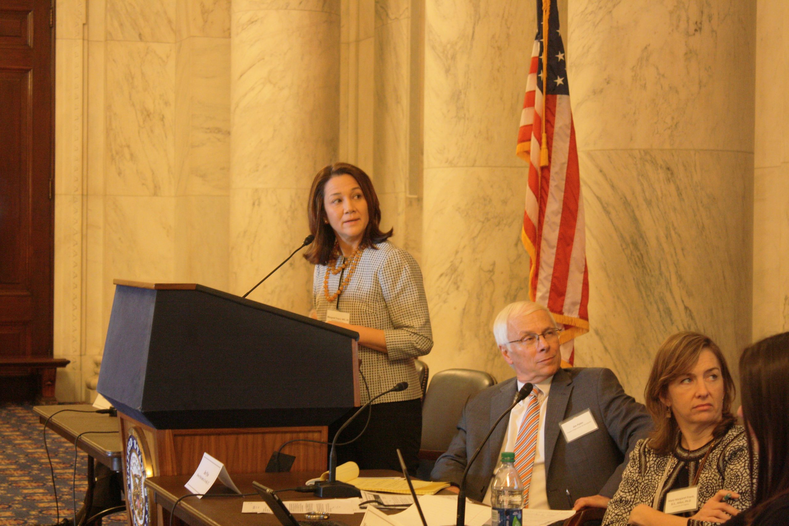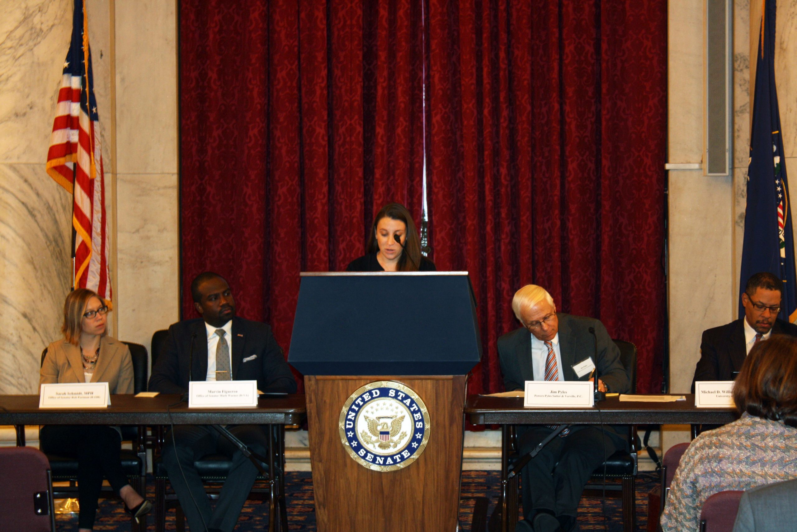 - Sarah Schmidt, MPH, Office of Senator Rob Portman (R-OH) and Marvin Figueroa, Office of Senator Mark Warner (D-VA) look on as Kristin Malloy, Office of Senator Tim Kaine (D-VA) speaks.