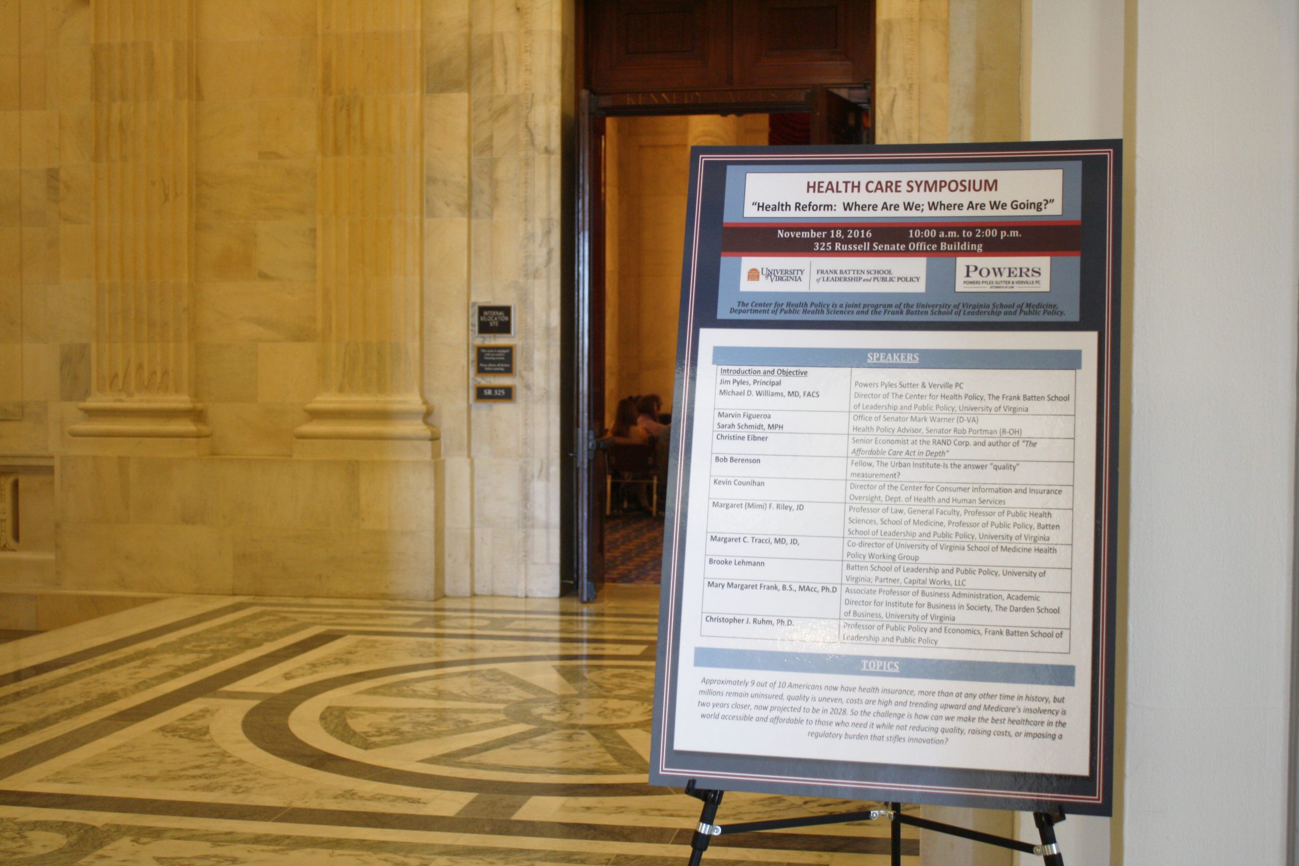 On November 18th, Powers Pyles Sutter & Verville and the University of Virginia’s Frank Batten School of Leadership & Public Policy held a healthcare symposium entitled “Health Reform: Where Are We; Where Are We Going?” The symposium took place from 10:00 a.m. to 2:00 p.m. in the Kennedy Caucus Room¹ in the Russell Senate Office Building. The extensive list of speakers included Senate staff; think tank fellows from the RAND Corporation and the Urban Institute; representatives from the Department of Health and Human Services; and UVA professors of health policy, law, economics, and business administration.