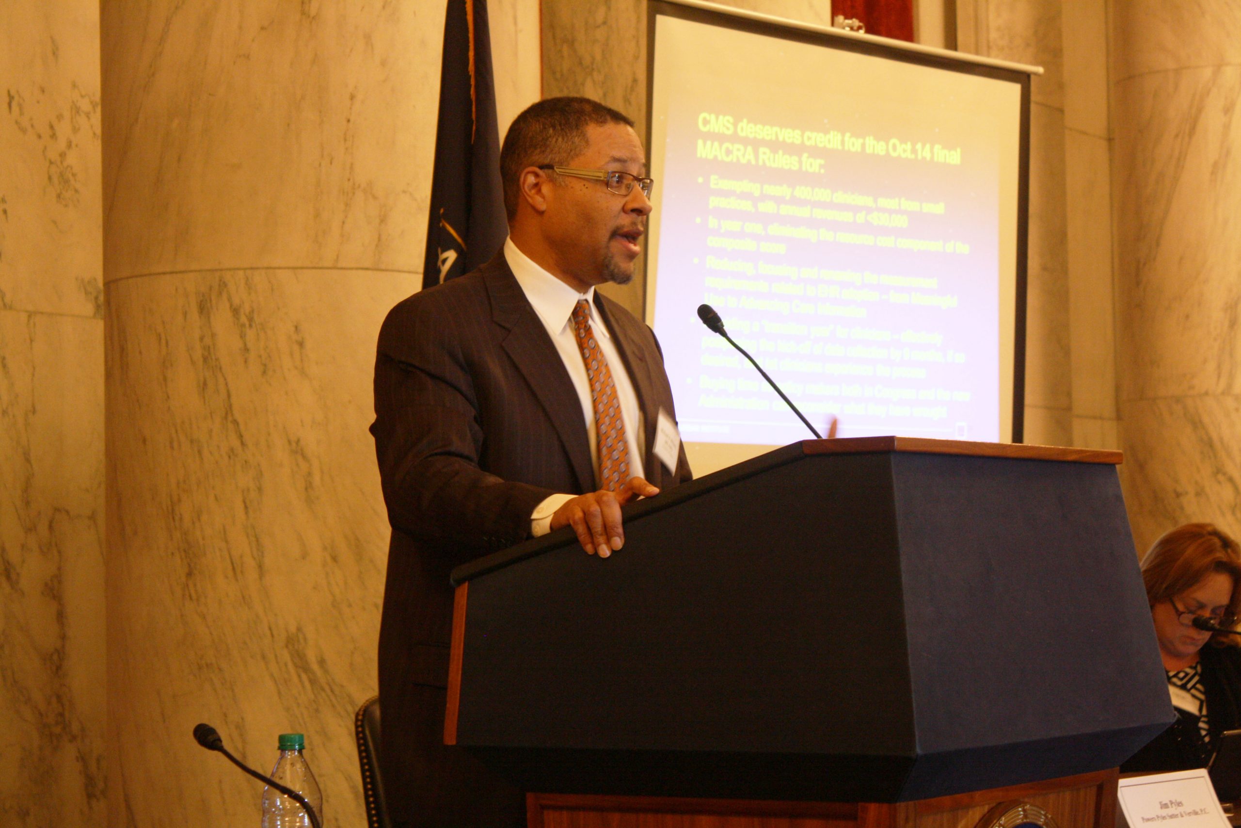 - Dr. Michael Williams of the UVA Batten School of Leadership and Public Policy speaks at the health reform event.